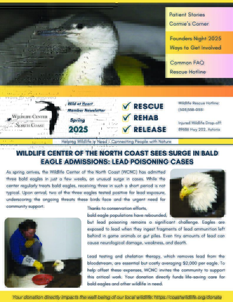 Wildlife Center of the North Coast Sees Surge in Bald Eagle Admissions